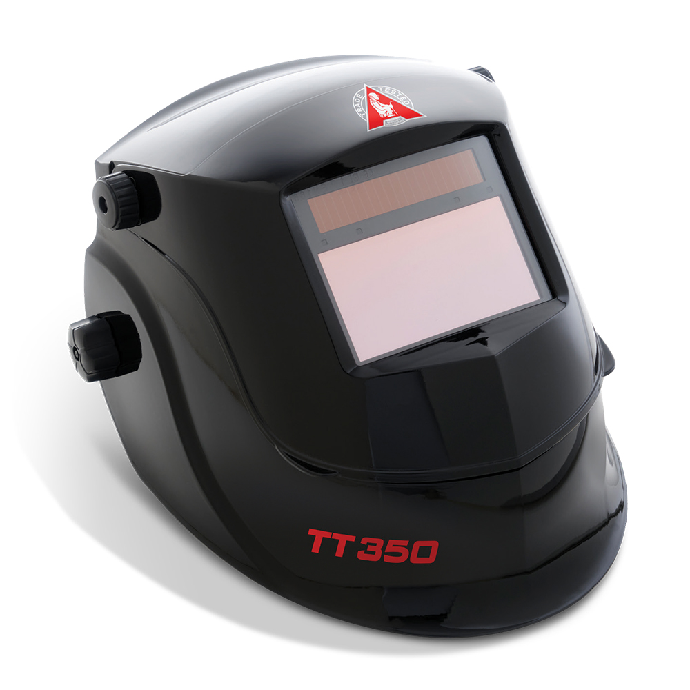 The Trade Tested, TT350 is a premium quality, wide view, lift front, electronic welding helmet with a superior variable shade, high definition true colour lens.
